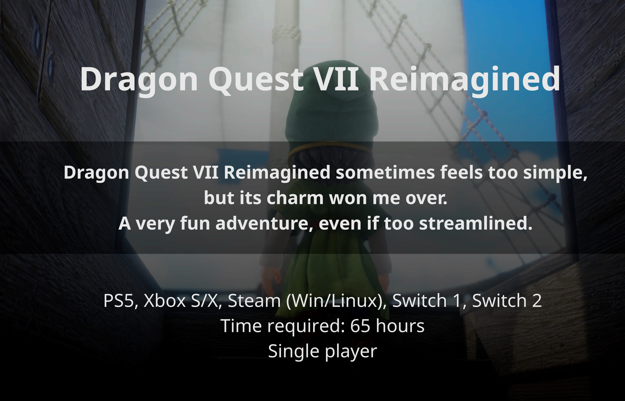 Dragon Quest VII Reimagined sometimes feels too simple, but its charm won me over. A very fun adventure, even if too streamlined.