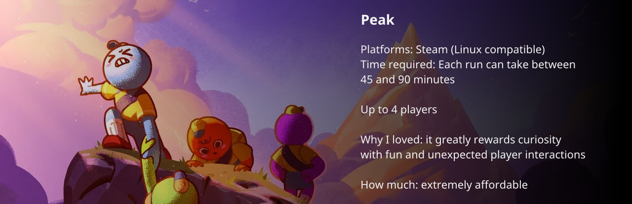 It was a smaller game that I've played just recently that, for me, was one of the most fun I had with friends on a game released this year: Peak.