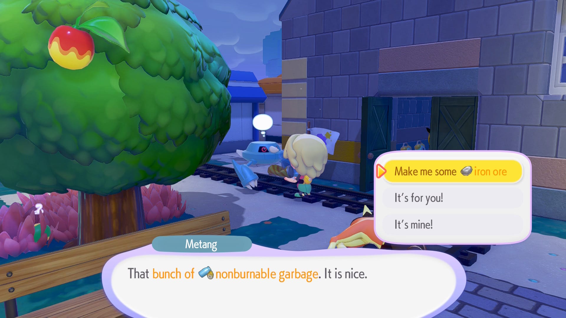 Because that's what Pokopia is: a society builder. We need houses, materials, food, but also joy, neighbors, and whimsy. Pokémon interact in the most delightful ways, and are not always happy, requiring more and more living standards from Ditto, be it with asking for better beds or some toys to spend the much needed leisure time. Because this game's hard work!