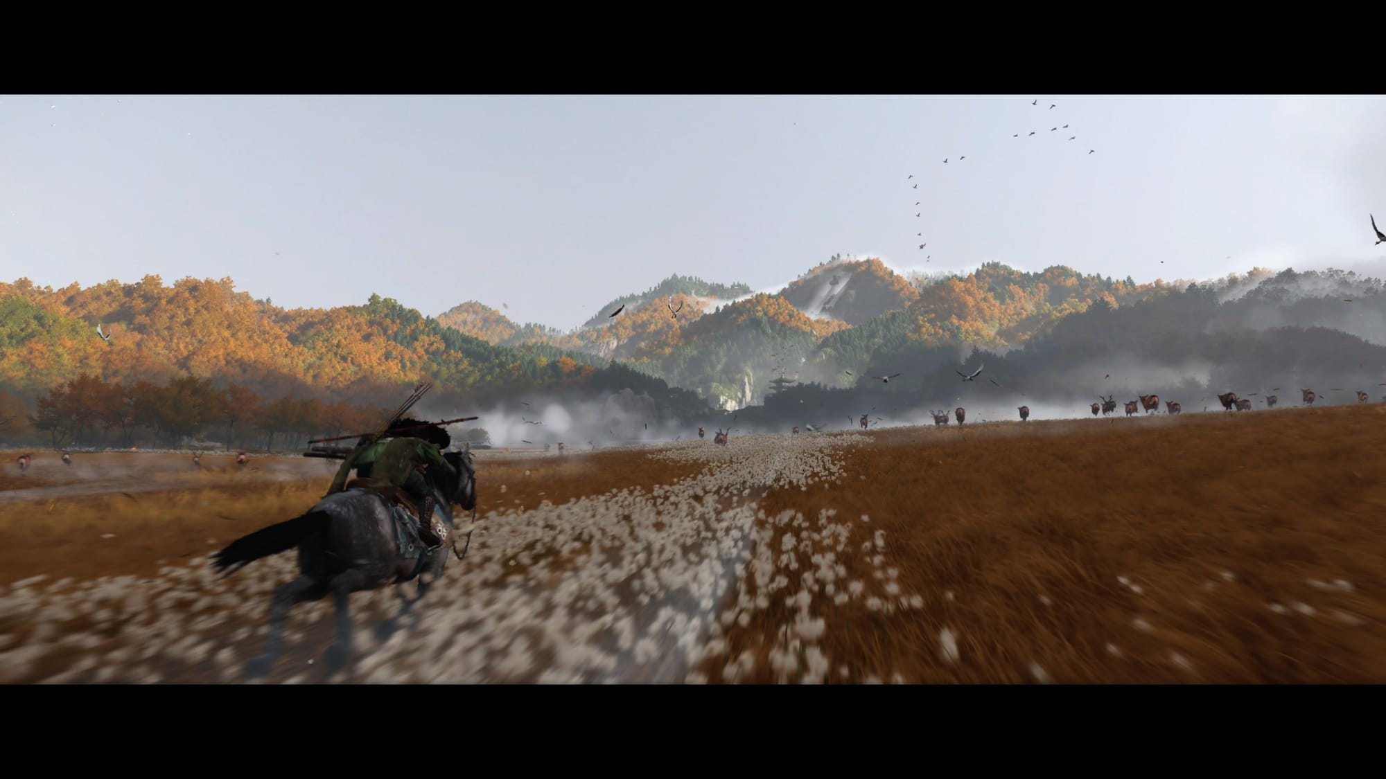 Ghost of Yotei is really impressive. It matches a photorealistic world with over the top effects, some of them looking like strokes from a brush while others matching real life.